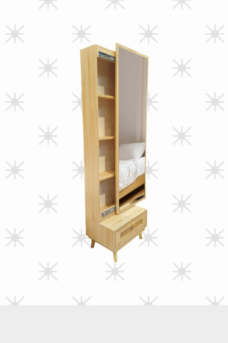 آینه قدی ریلی کشو دار مدل هاوایی ملامینه و حصیر