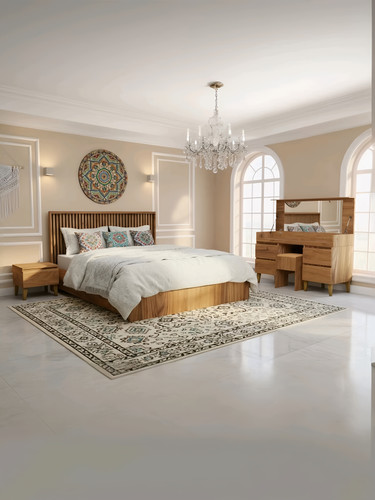 سرویس خواب أَرتَمیس | طراحی خاص با چوب گردو و پارچه تدی کپی