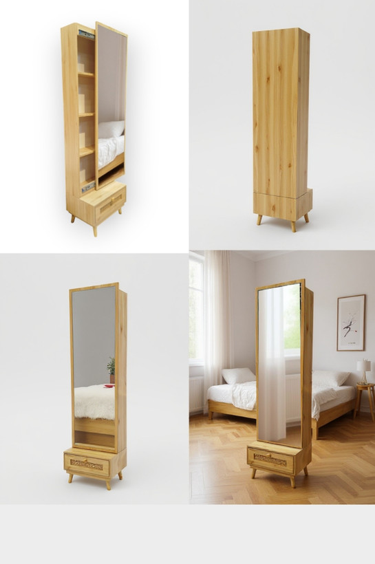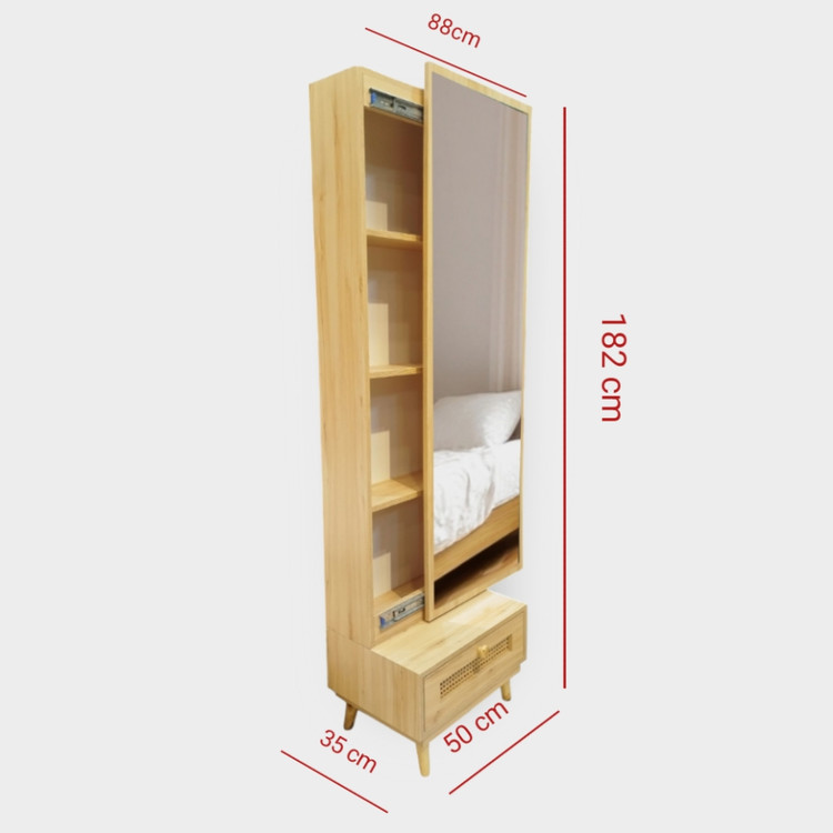 آینه قدی ریلی کشو دار مدل هاوایی ملامینه و حصیر
