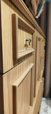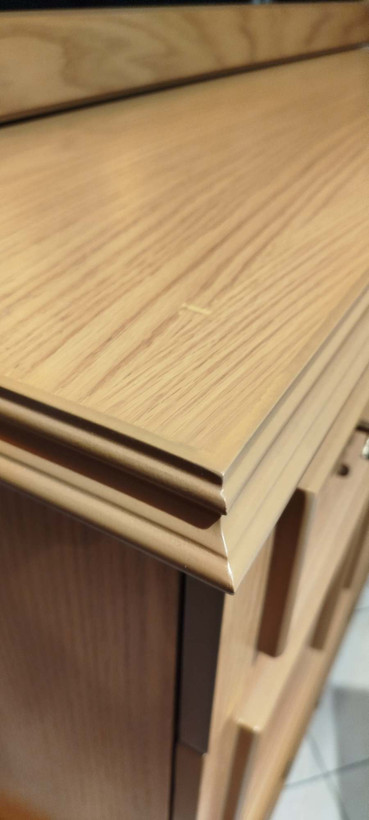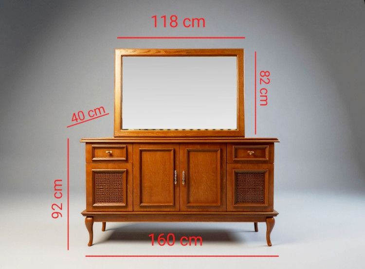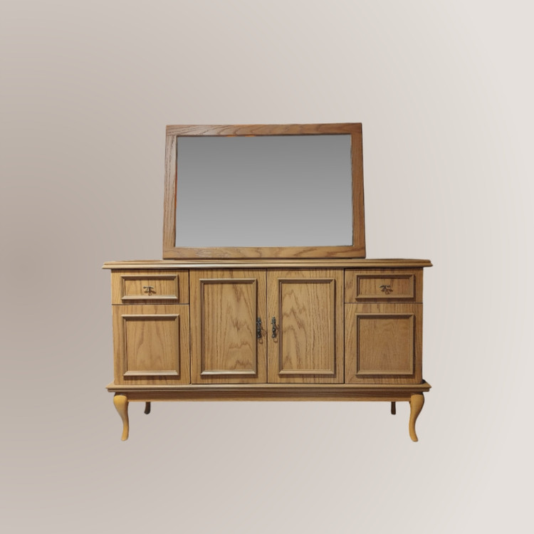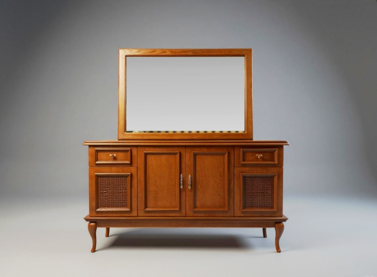 جنس بدنه از ام دی اف با روکش بلوط طبیعی و ابزار لبه ها و پایه ها چوب میباشد منایب فضا های کلاسیک و نئوکلاسیک