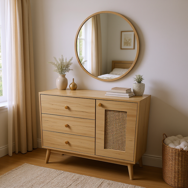 آینه دراور مدل لیندا جنس بدنه ملامینه پایه ها چوب