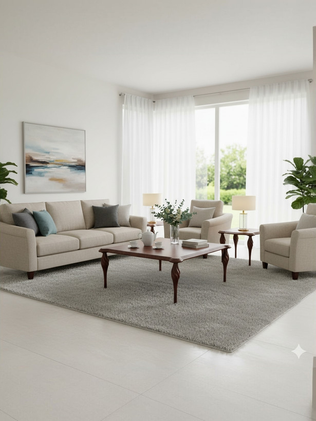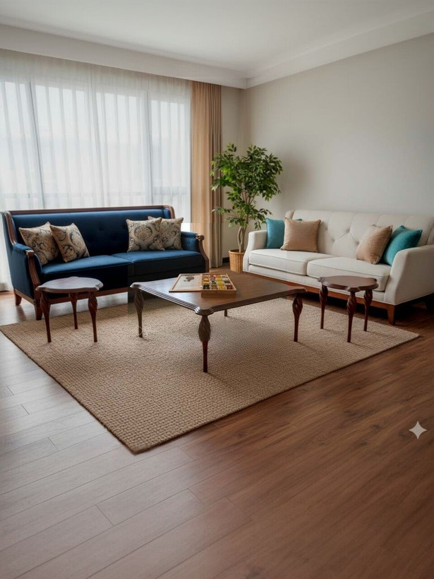 ابعاد مناسب: میز مرکزی ایدهآل برای قرار دادن چای، کتاب یا وسایل دکوری، و عسلیهای کوچک برای استفاده جانبی.