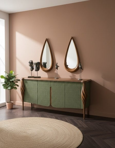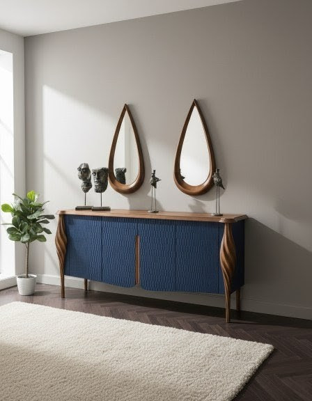 این کنسول با طراحی جادار خود، گزینهای عالی برای قرار دادن وسایل دکوری، گلدان، یا حتی لوازم کاربردی مانند کلید و وسایل کوچک است. ارتفاع مناسب (۸۷ سانتیمتر) و عمق ۴۷ سانتیمتر، دسترسی آسان را تضمین میکند. آینههای تعبیهشده نیز بهعنوان ابزاری برای بررسی ظاهر یا افزودن عمق بصری به فضا عمل میکنند، که برای اتاقهای کوچک بسیار مفید است.