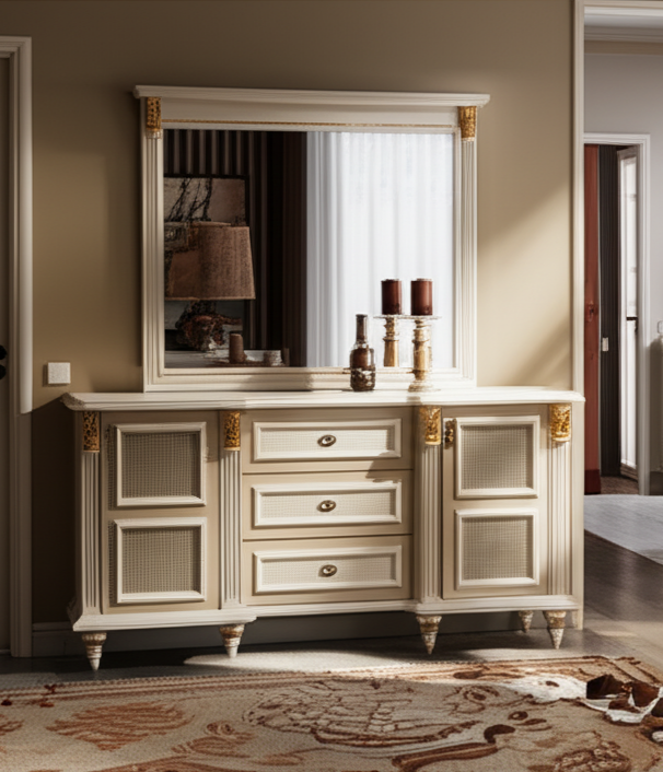 آینه کنسول مدل روژان جنس بدنه روکش بلوط و چوب و پوشش پلی استر مرغوب