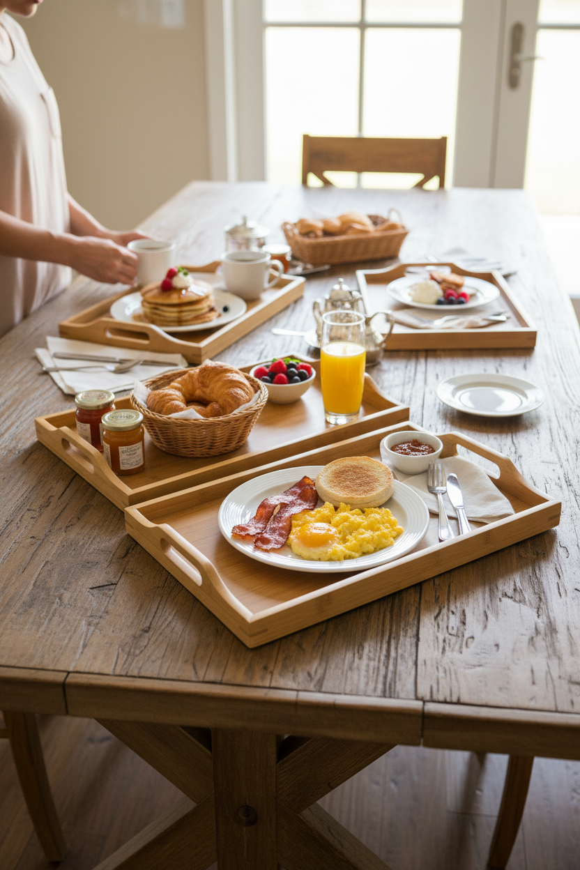 ست سینی بامبو سه‌تایی | سینی پذیرایی چوبی در سه سایز