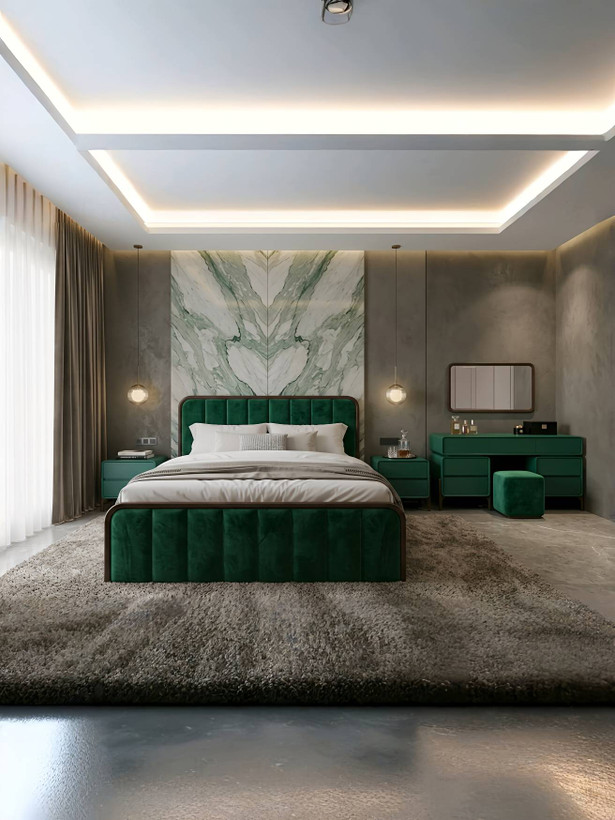- پایهها، فریم تخت و قاب آینه تماما چوب طبیعی