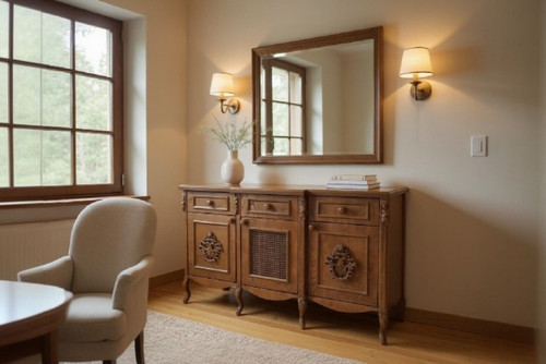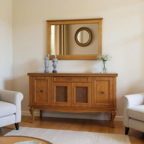 اینه کنسول مدل کمل جنس کار روکشی و پایه های چوبی دو نوع حصیری و ساده با پوشش پلی استر