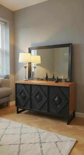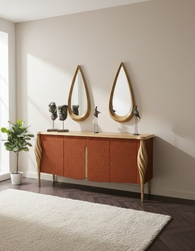 آینه کنسول مدل روژان جنس بدنه روکش بلوط و چوب و پوشش پلی استر مرغوب
