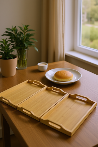 ست سینی بامبو سهتایی | سینی پذیرایی چوبی در سه سایز